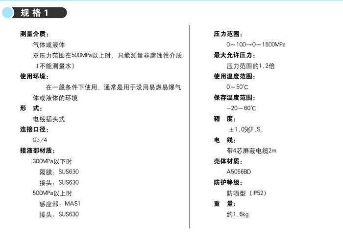 本產品采用高性能金屬應變片作為感應元件,適合于測量超高壓力,廣泛用于高壓化學合成、人造水晶制造和高壓油壓機器等設備。