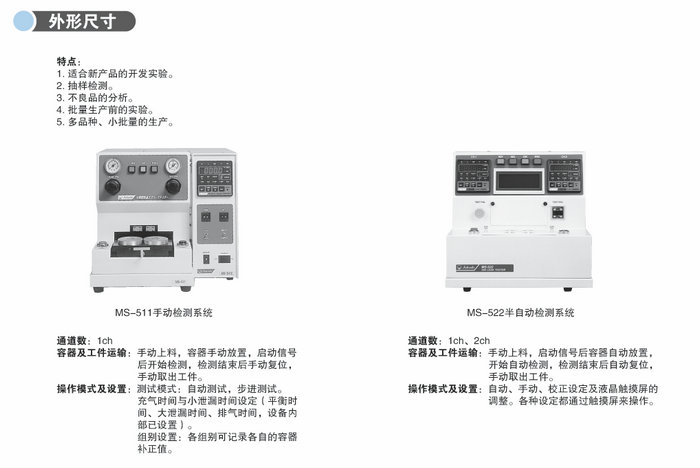 用于小型電子產品(諧振器、振蕩器、電容、電阻等),密封性檢測的桌上檢測系統,適合小批量多品種實驗檢測